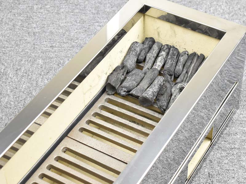 丸形状の中では一番細く短い炭です。細く丸いので七輪や焼き台の収まりが良いです。微妙な火力調整がし易く、状況に応じた焼き加減に仕上げることができます。