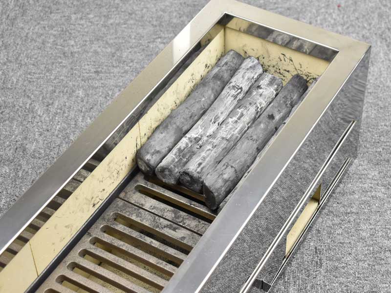 焼鳥店様、うなぎ料理店様がよくお使いになるサイズです。見た目の良さもこれぞ備長炭といったものです。長めの焼き台でご使用ください。