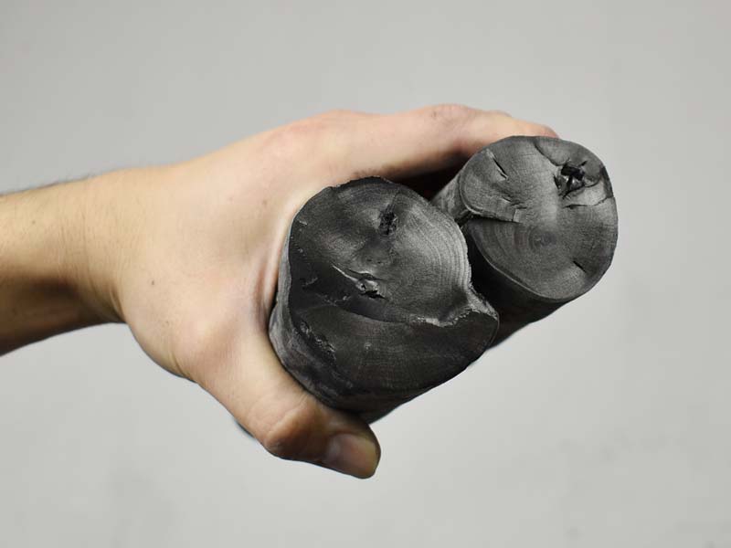 備長炭の中では最も長く太いサイズの炭です。奥行きが広く幅の広い焼き台や、営業時間の長いお店向きです。こまめな炭の継ぎ足しで火力調整を行う使い方には向きませんが、繊細な調整が必要のない場合には手間がかからず楽な面があります。