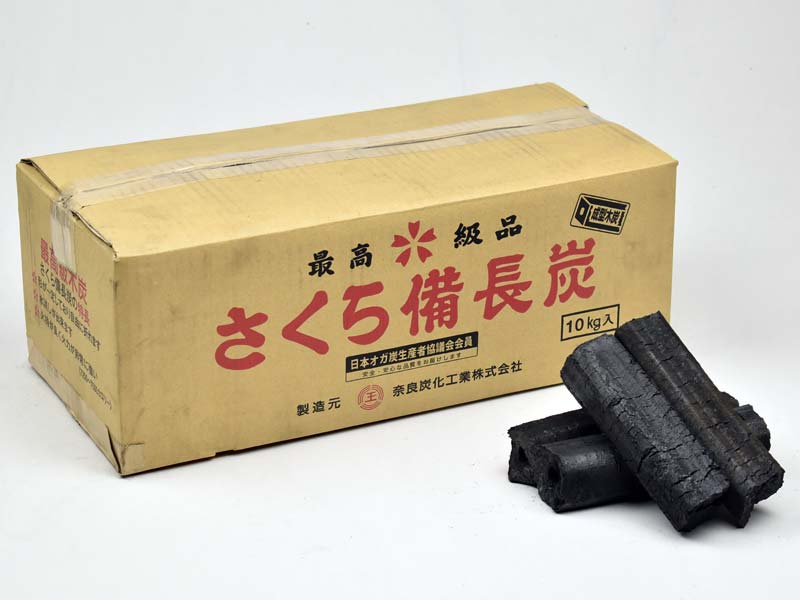 さくら備長炭10kg 2022年8月19日 showcase 国産オガ炭 国産(奈良県)メーカー品で四角形のオガ炭です。最高品質であることは言うまでもありませんが、成形炭の品質4ポイント(火力・火持ち・灰の量・火付き)のバランスがとれた商品です。 ★火持ち、火力、火の起こしやすさのバランスが良い★灰が少ない★炭火焼き店全般に★若干火起こししやすい★国産オガ炭で迷われている方におすすめ 標準内容量 約10kg長さ 10~20cm 太さ4~4.5cm形状 四角形産地 奈良県箱のサイズ W48.5×D23.5×H17.5